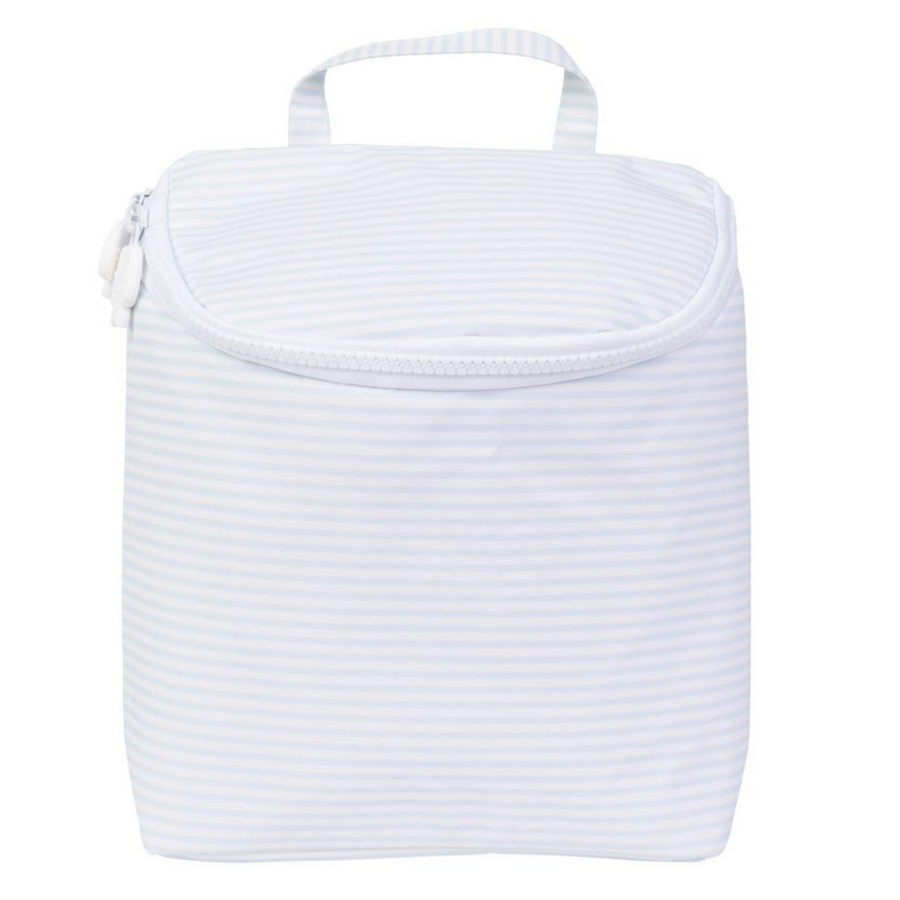 Coated, clean, and cute! The Bottle Bag is your new favorite accessory for outings with your baby. So tired of leaking spilling bottles, this bag is designed to hold three bottles upright. Great for snacks and lunch too. Available in pink and blue gingham. Equipped with a mesh inner pocket to hold your cooler pack, specifically placed on the back of the bottle bag, leaving the top and front open for monogramming.