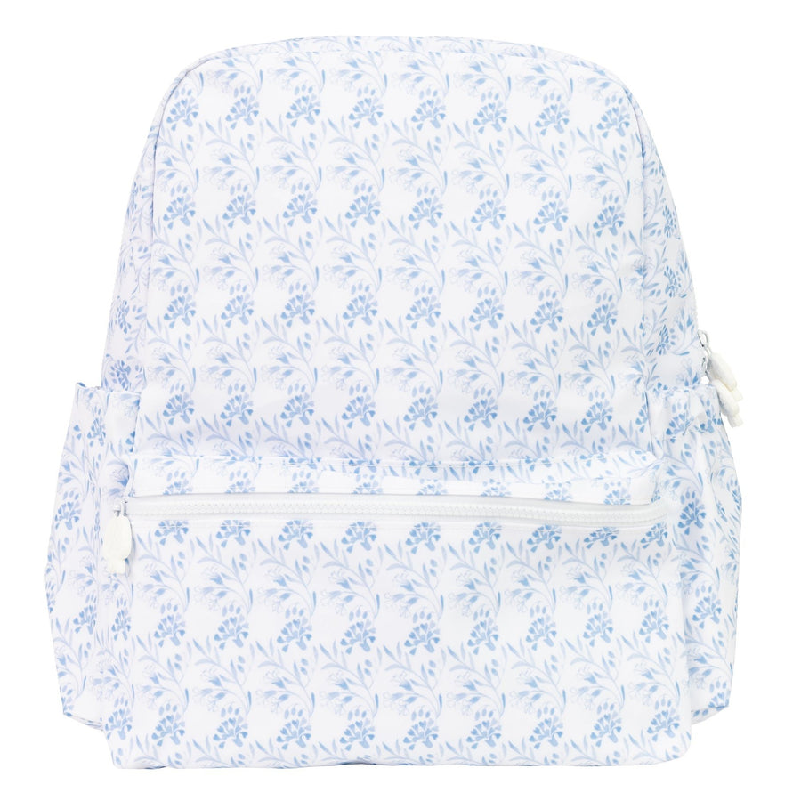Coated, clean, and cute! The Backpack is offered in several wipeable classic patterns, and equipped with an outer zipped pocket and two drink holder sleeves.