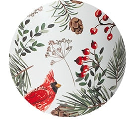 Elevate your celebration! 🎉 Traditional red cardinals perch on winter pine branches on a snow white background. .