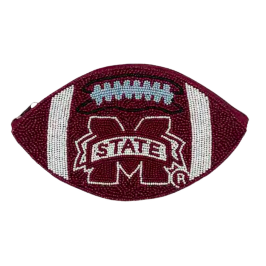 • M State Beaded football coin bag dimensions are approximately 7"L X 4.5"W