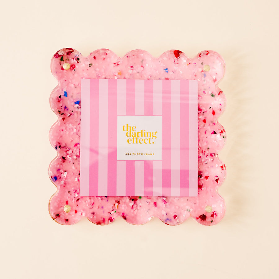 The Darling Effect Square Scalloped Acrylic Frame - Confetti Pink