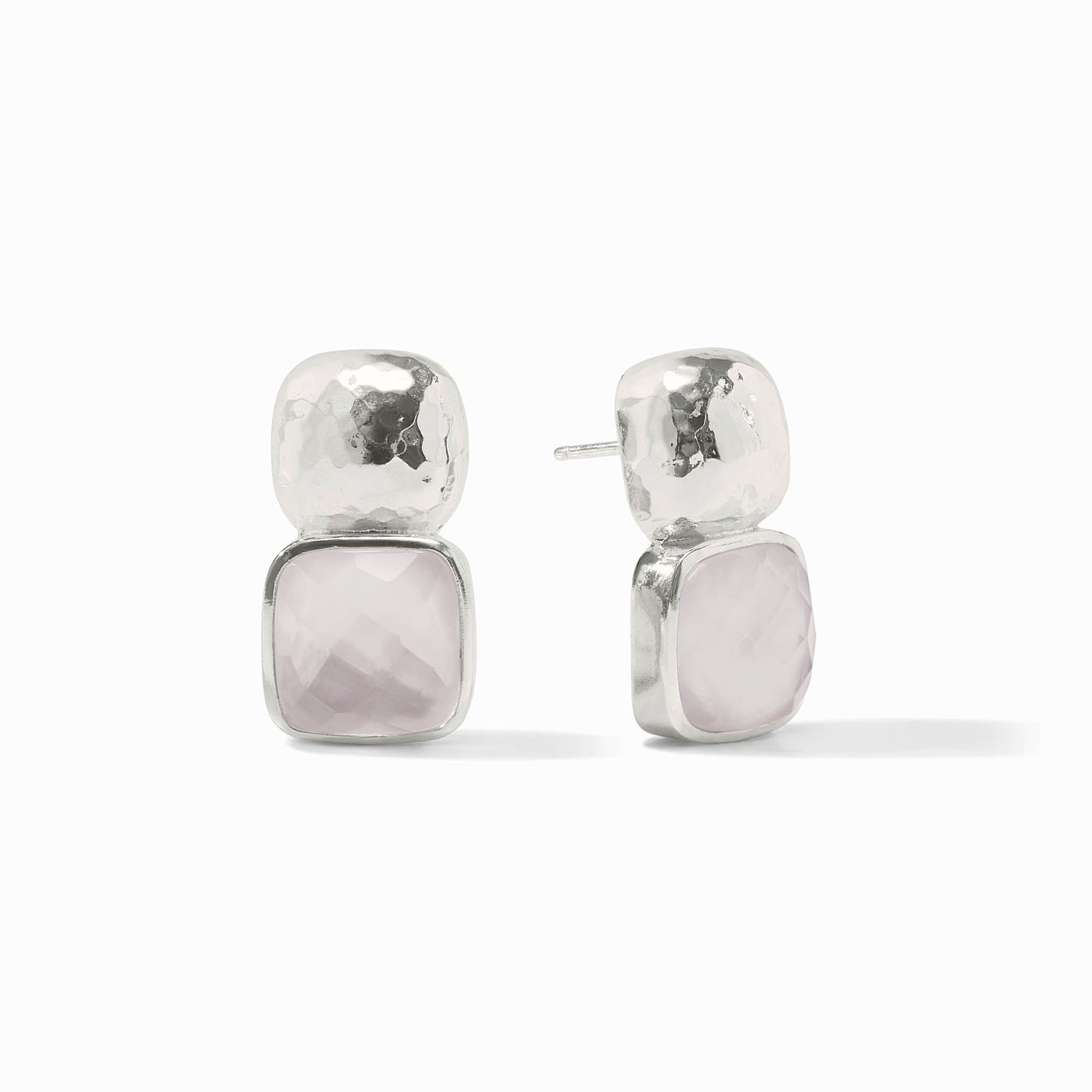 The stacked squares of these earrings—a lightly hammered top above the cushion shape gemstone underneath—comes in a spectrum of sparkling colors.