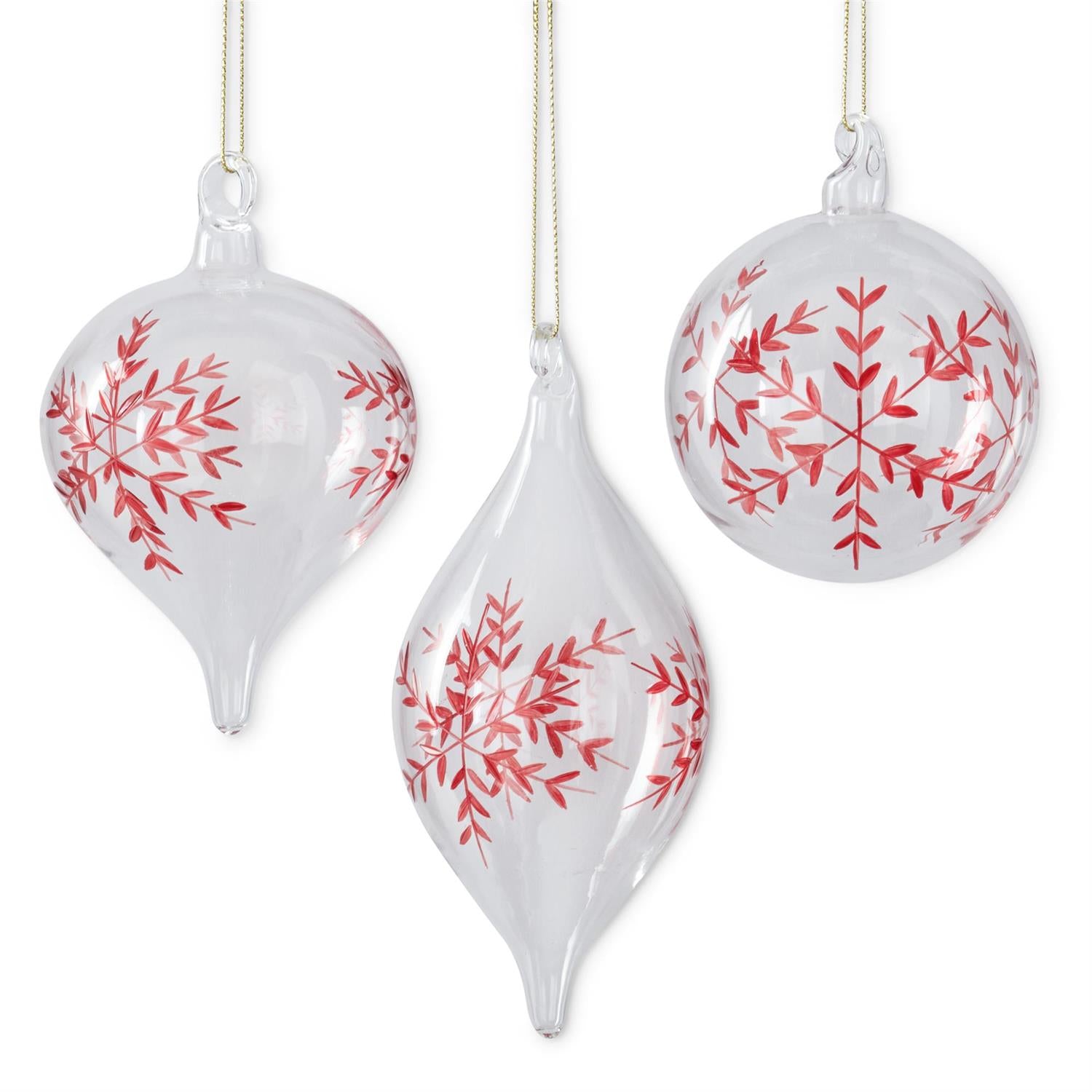 K & K Interiors Clear Glass Red Etched Snowflake Ornament - Heart