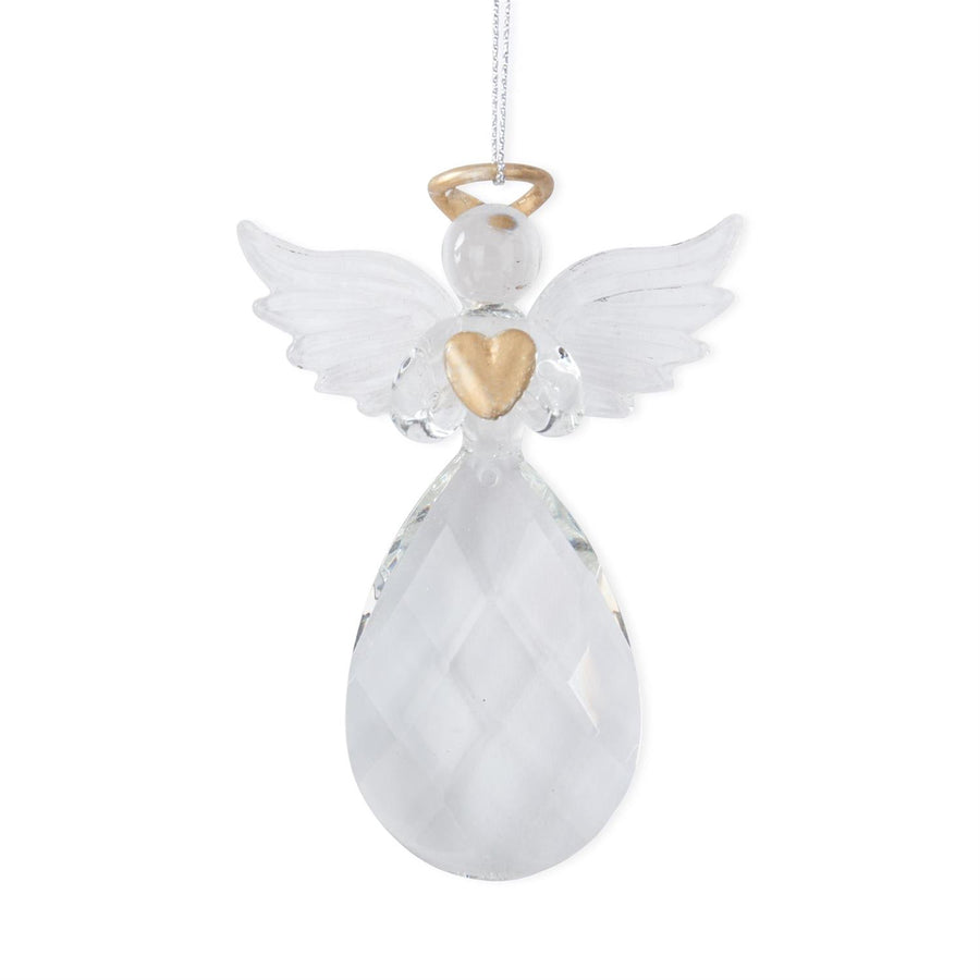 K & K Interiors Clear Cut Glass w/Gold Angel Ornament - Heart