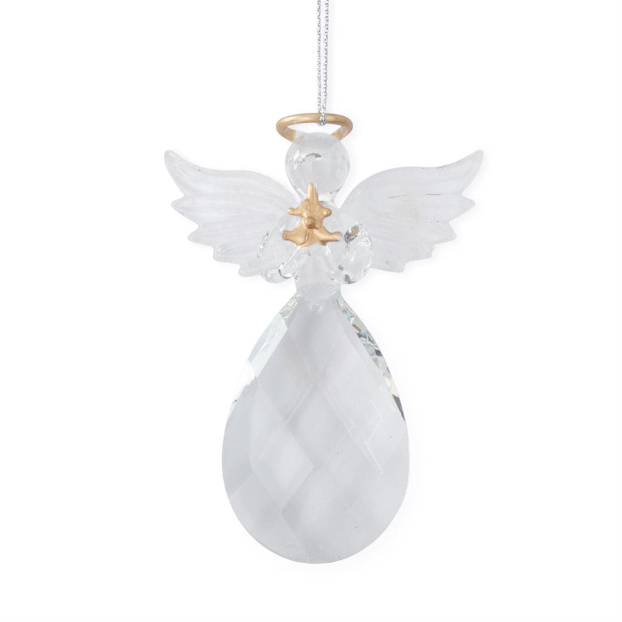 K & K Interiors Clear Cut Glass w/Gold Angel Ornament - Praying Hands
