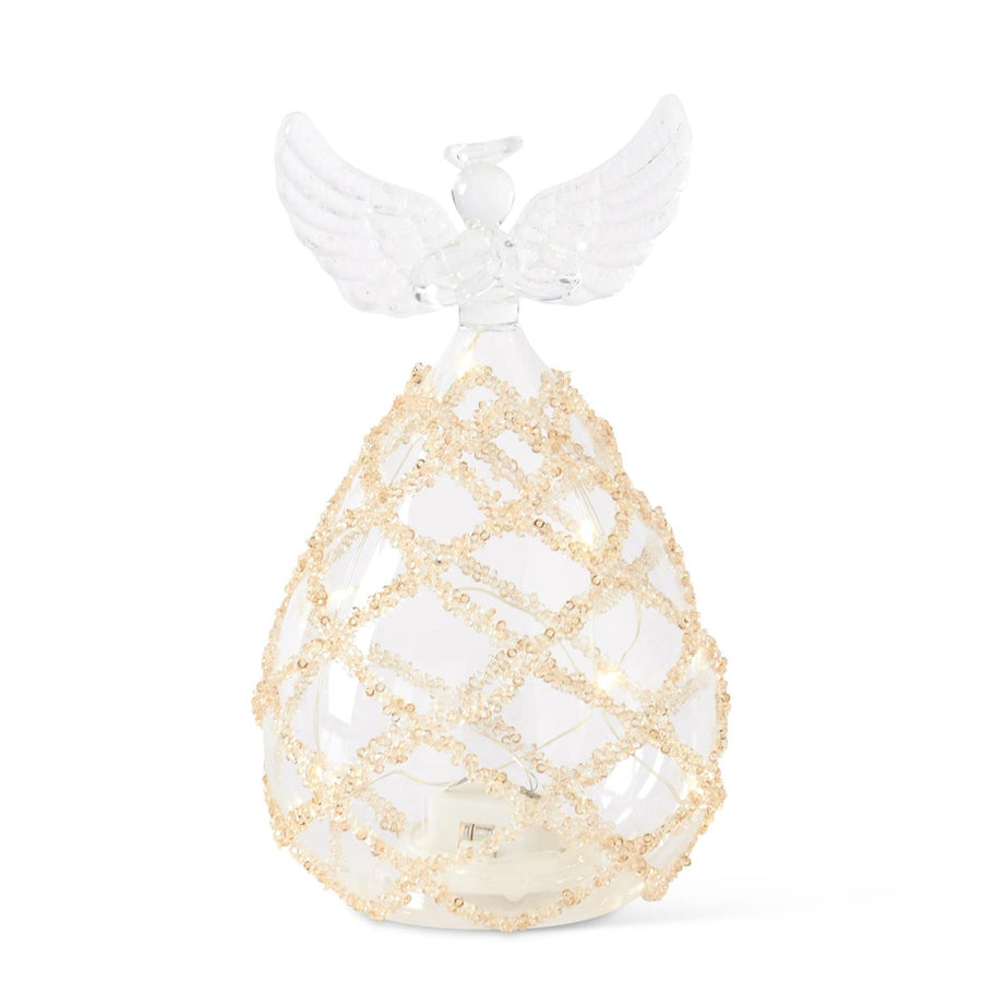 K & K Interiors Clear Glass LED Angel w/Lattice Gold Beads - 6.5"
