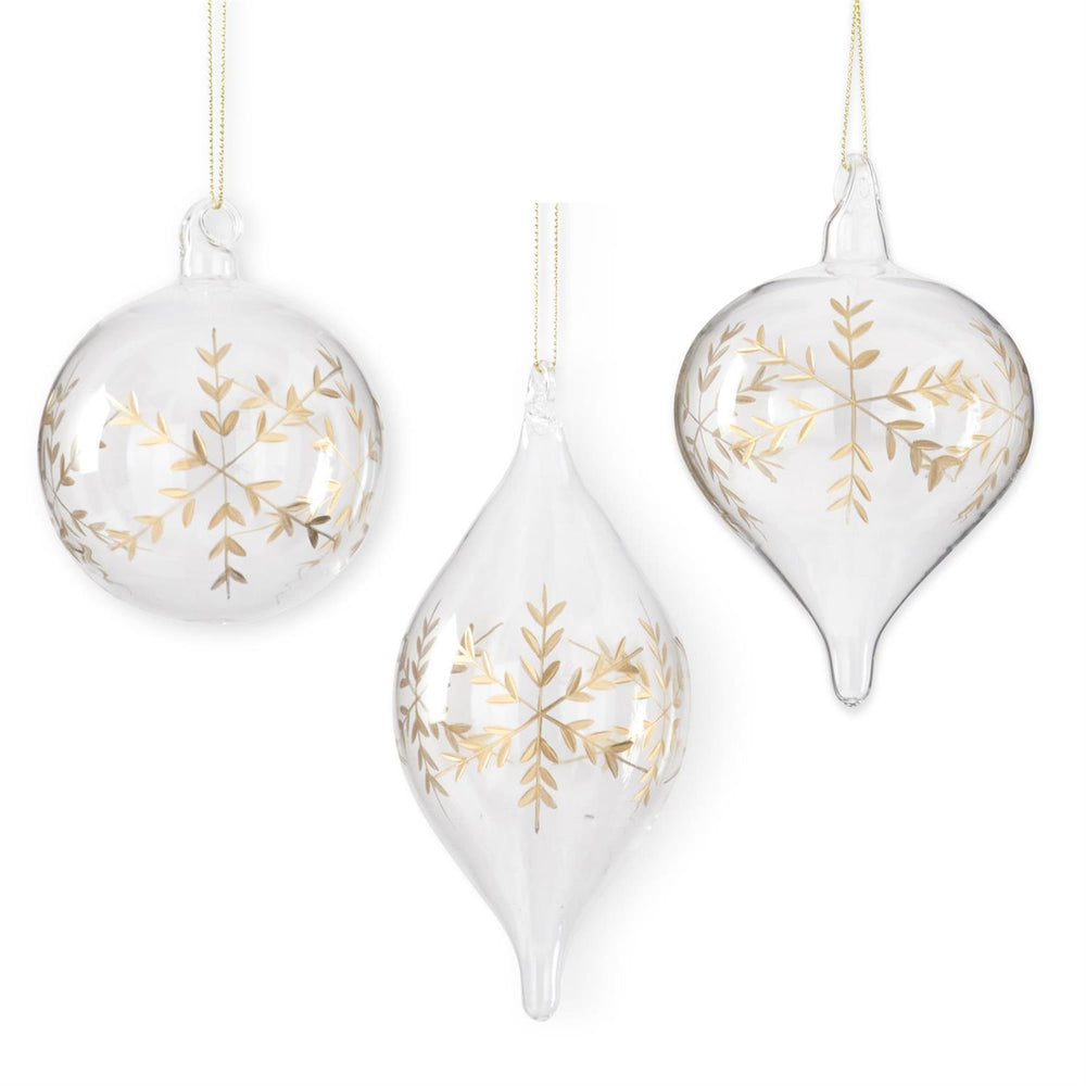 K & K Interiors Clear Glass Gold Etched Snowflake Ornament - Onion
