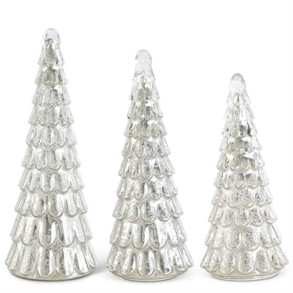 K & K Interiors Silver LED Mercury Glass Tree w/Timer - 16.75"