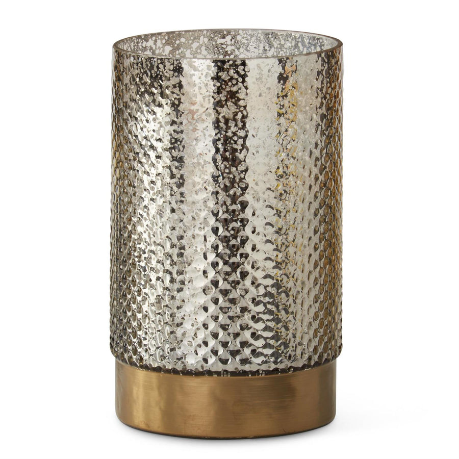 K & K Interiors Silver Dot Glass Candleholder w/Antique Brass Band Bottom - 9.25"